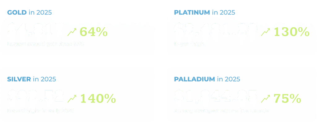 After record-breaking gains in 2025, precious metals are trading at multi-decade highs as multiple macro forces converge: